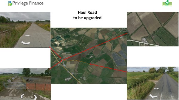 - Access Route: All delivery vehicles will enter the site via the grade-separated junction at Calcutt, using the upgraded haul road to reach the plant. This road will be upgraded to a suitable standard (see Appendix II for specifications) to support safe and efficient access for large tractor and trailer units as well as HGVs.